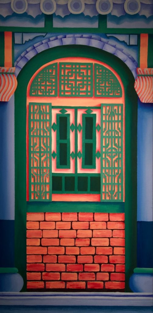 This traditional Chinese courtyard house (known as Siheyuan) depicts the smallest window of my windows series, reflecting my desire to reconnect with my seemingly inaccessible mainland Chinese heritage. To enhance my appreciation of the beauty and details in architecture, I used more vivid colours instead of the realistic muted palette. To convey my longing to grow closer to my distant culture, darker values of this series’ palette were used.